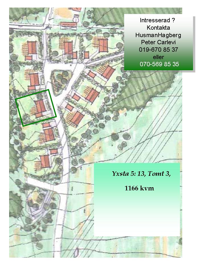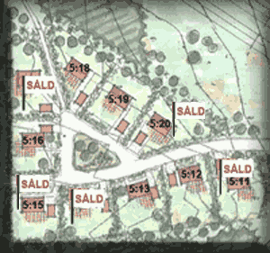Reserveration innebär att man blir kontaktad om någon annan visar intresse för tomten. (Husen på tomt 1 och 9 ligger närmare tomtgräns än avsatt avstånd, enligt godkännande av dåvarande tomtägare)